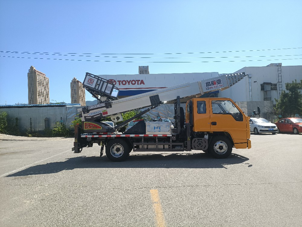 云梯车又叫云梯搬运车、高空运输车、高空作业车、云梯搬家车。该车主要用于工程租赁、幕墙施工、楼顶防水作业、太阳能安装,广告高炮、电力维修、空调安装、搬家公司、水泥沙石搬运、船舶维护、路桥修护等。作业范围可达32米高相当于11层楼,承载货物重量重达400公斤。