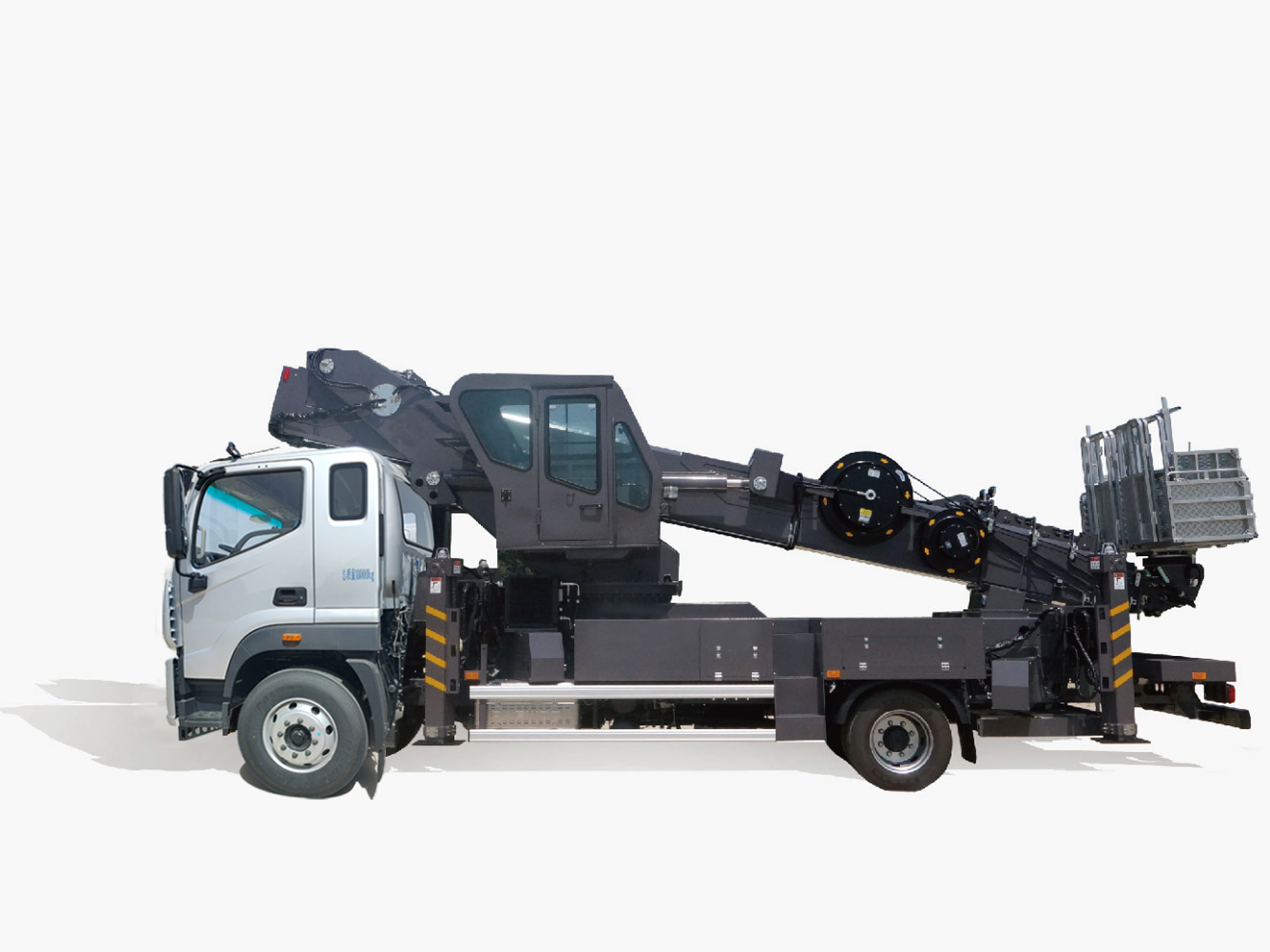 转台液压手柄操纵,工作平台可用遥控器操作,可远程发动机点火、熄火,远程控制油门大小;最大作业幅度28m,大臂、工作平台均可360°不限角度全回转作业。无线遥控技术,操作者可在狭小的作业环境中作业,操作灵活方便,工作视野更佳,操作人员可以选在适宜的地点完成操作;支持多动作复合操作。
