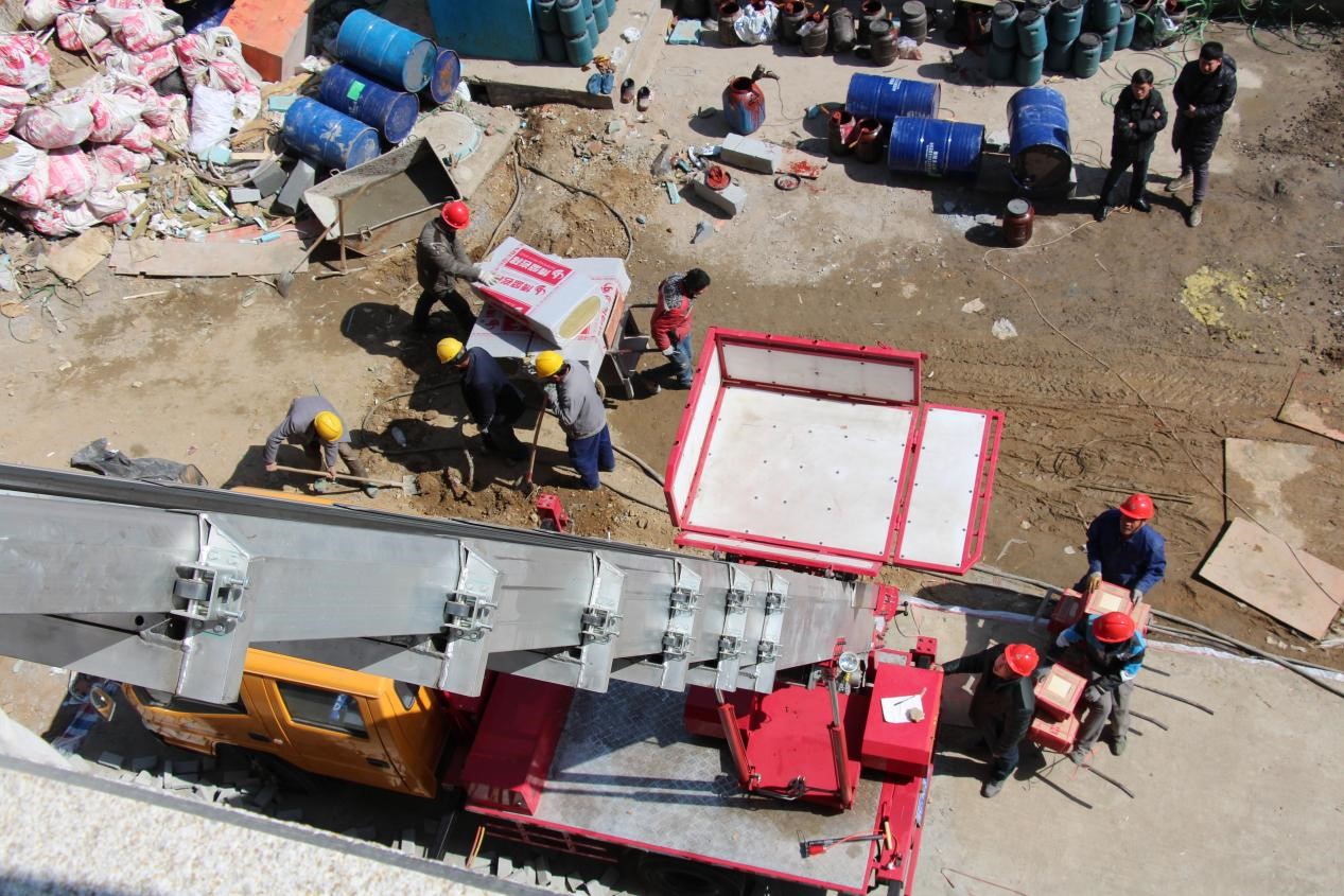 比起吊车等不稳定的摆动,高丽亚云梯车自卸料斗让上料更加便捷快速,节省时间和人工。另外,高丽亚单次载重400公斤,上下完成一次运送就只需1分钟,工作效率被极大地提升。